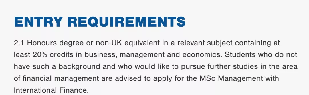 比如,一般情况下,大部分英国的金融类研究生都要求学生来自金融,经济,数学专业。但是,诺丁汉大学的MSc Banking and Finance 项目是接受包括business, management 等其他本科背景的学生申请的。