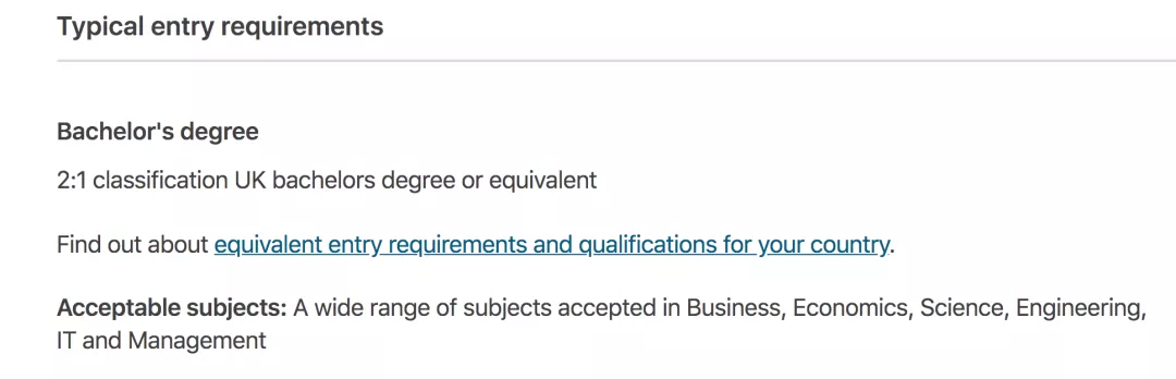 比如,下图是UCL MSc Management的入学要求,官网上明确表示,接受任何专业背景的学生申请。