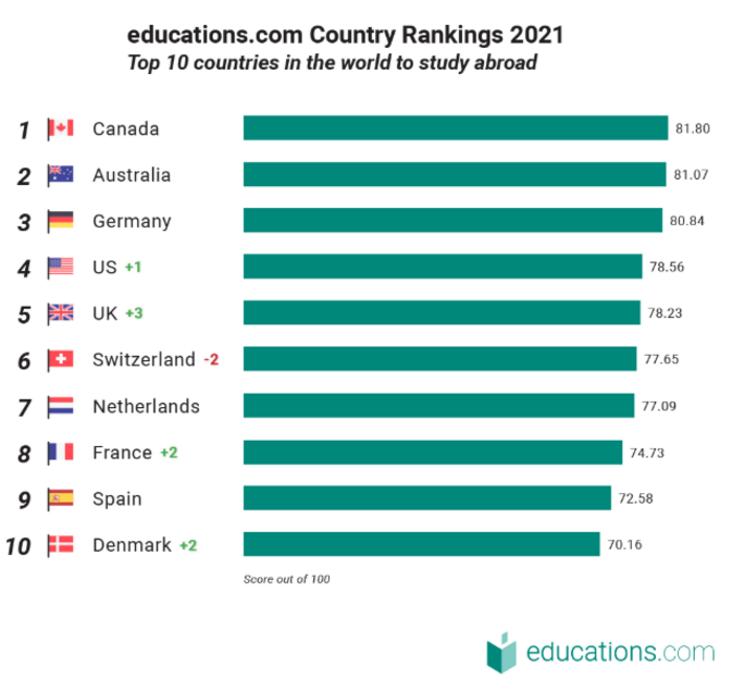 2021年全球十大最佳留学国家排行榜