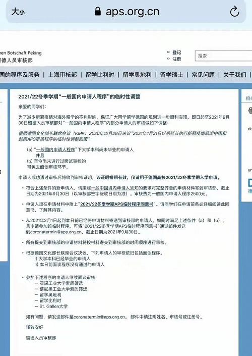 德国审核部免面谈再次启动,申请人成功通过审核后将收到审核证明,该证明短期有效,但注意此次审核证书仅适用于德国高校2021/22冬季学期入学申请。截止日期2021年9月30日。