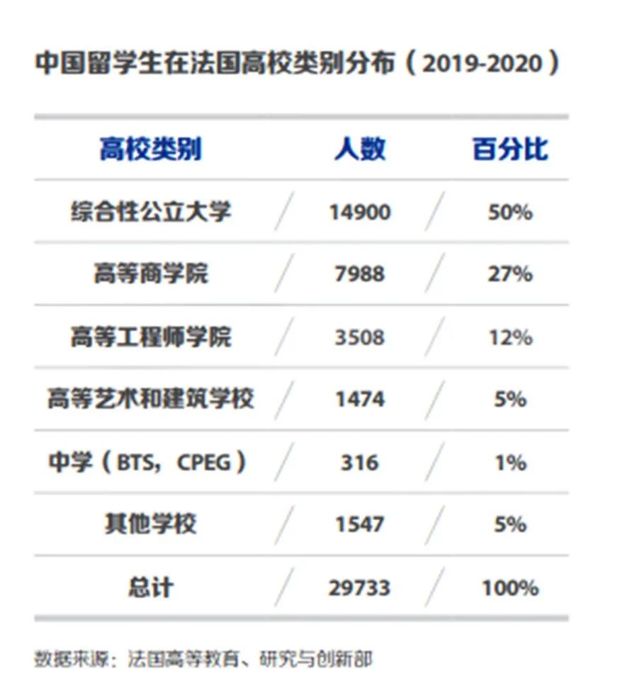 对于留学生群体,留学费用也相较亲民。法国因其高质量且多样化的教育体制特点,每年都吸引来自世界各地的学生赴法国留学。中国留学生在法国高校类别分布如下:
