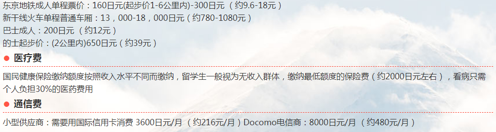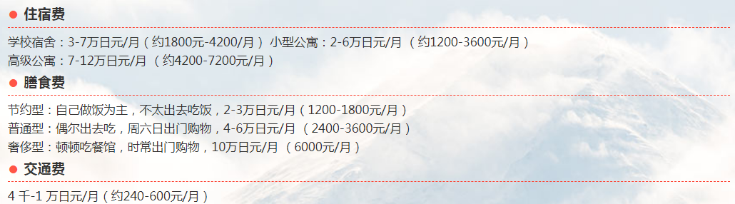 房租、伙食费和学生保险,这3项是必须的,一般学校都提供学生乘车免票,所以交通费没考虑在内。