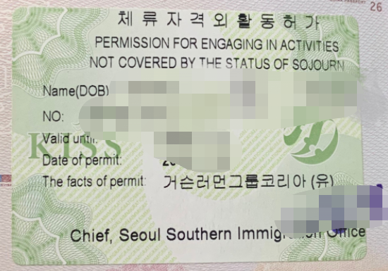 持有学生签证D-2或者语言研修签证D-4,入境韩国6个月以上、成绩在2.0以上、上课出勤率70%以上,得到学校内留学生负责人的确认,在出入国管理事务所获准后可以打工(获取打工证)。关于打工时长:每周(周一至周五)打工时长不超过 20 个小时,硕博士课程不超过 30 小时,最多可在两个场所兼职。公休日(周六、周日)及放假期间的兼职时间和场所则没有限制。