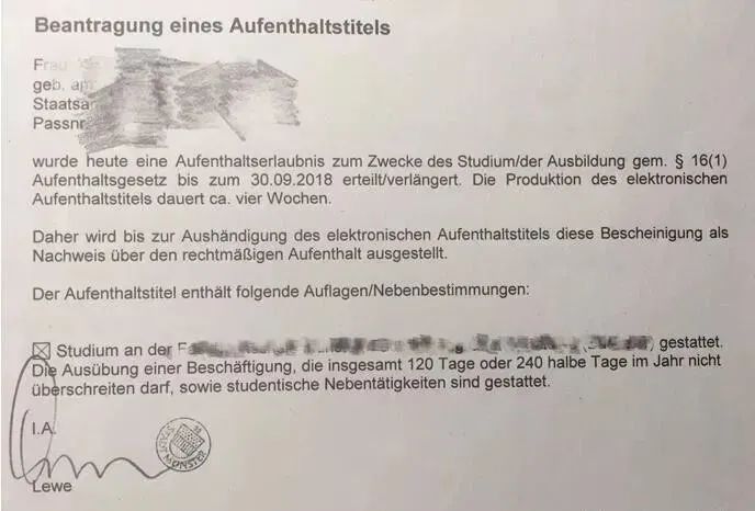 在德国大学里,持短期签证学习语言的不允许打工,其他学生上学期间原则上允许打工。对于来自非欧盟国家/地区的留学生,其学生签证中就已经带着工作许可,并明确标注:每年允许的兼职时间最多为120个全天(一天八小时)或者240个半天(一天四小时),不得逾越。无论什么样的兼职都必须在外管局进行登记。下图是一份来自外管局的声明,最后一段话明确规定打工时间要求。