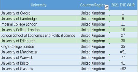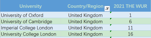 接下来是2021 THE 世界排名TOP100英国院校,主要分为3类: