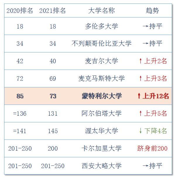 加拿大多大、UBC、麦吉尔连续跻身世界TOP50,并且在各项世界大学排名中2021年均有上升,是当之无愧备受世界认可的加拿大TOP3大学。