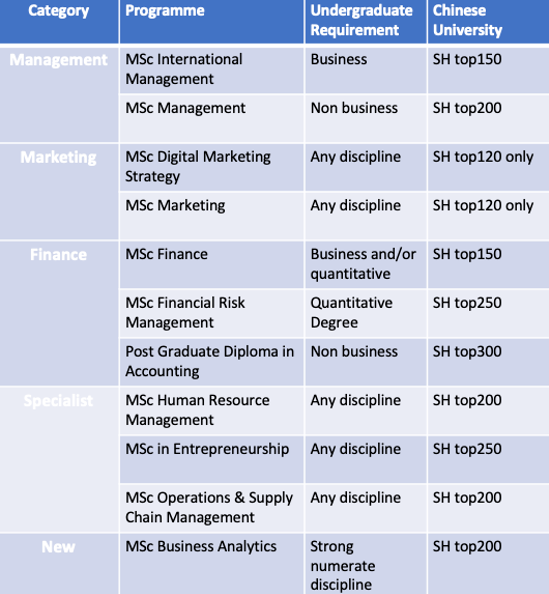 *MSc International Management, MSc Marketing and MSc Digital Marketing Strategy专业需要雅思7.0,小分不低于6;Duolingo英语测试总分120/160分