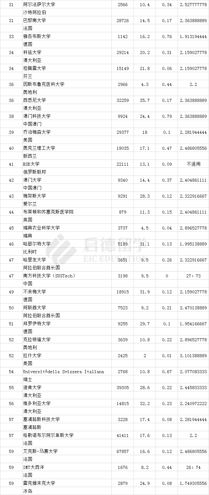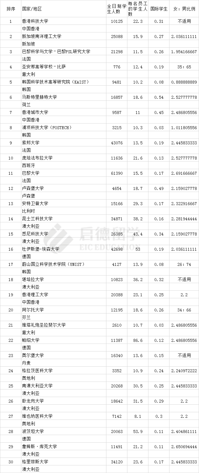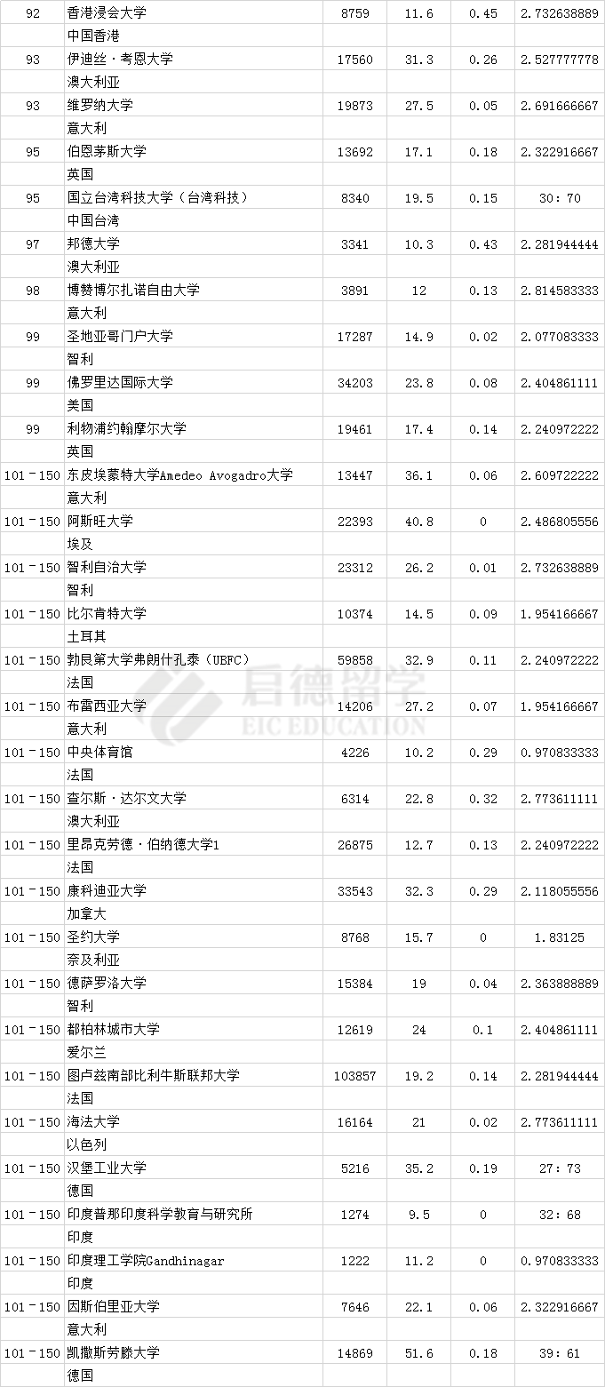 TOP 150 表单 下面附上2020年THE年轻大学排名 TOP 150 表单