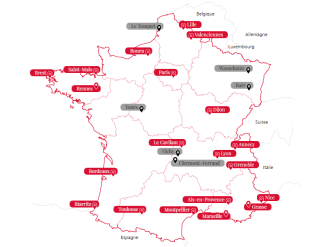 在法国各大城市的分布图如下: