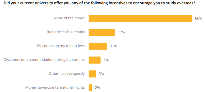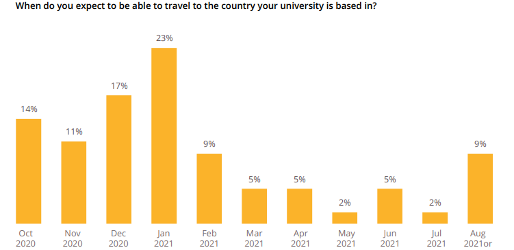对于那些没返校的留学生,有14%的留学生希望2020年10月能返校,还有17%期望在12月前返校!23%的留学生希望在2021年1月前返校(也就是春季入学时间),还有9%的留学生希望在明年8月前返校!