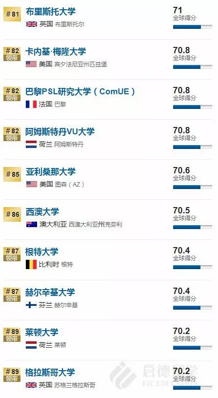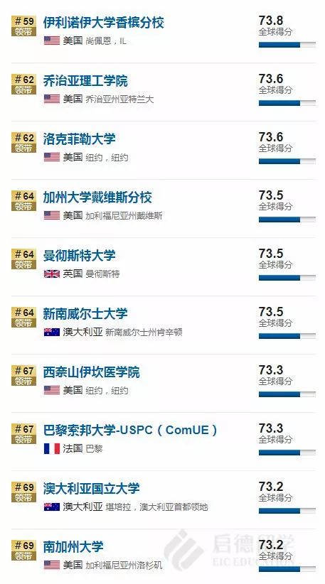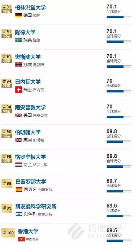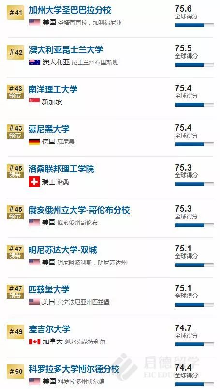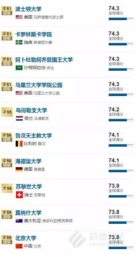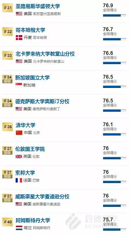 中国大陆的高校以排名50的清华为首,其次为北大68名,中科大138名,交大145名,复旦159名,浙大165名,南大179名。