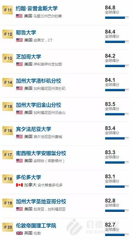 此次排名,居于榜首的当属哈佛大学,其次是MIT,斯坦福名列第三。前20基本被美国霸占,除了牛津(排名第5)、剑桥(排名第7)和伦敦帝国理工学院(第18名)这3个学校遗世独立。