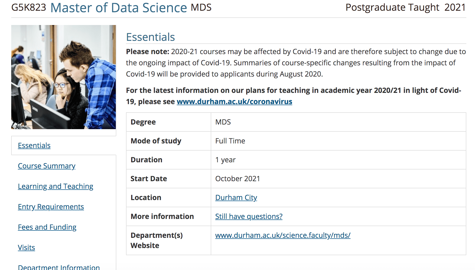 除了LSE以外。杜伦大学也在近期宣布为2021年入学的研究生同学们新开了数据科学类专业,项目名称为Master of Data Science。这个新专业最大的亮点在于,这是专门给跨专业学生开设的Conversion课程!