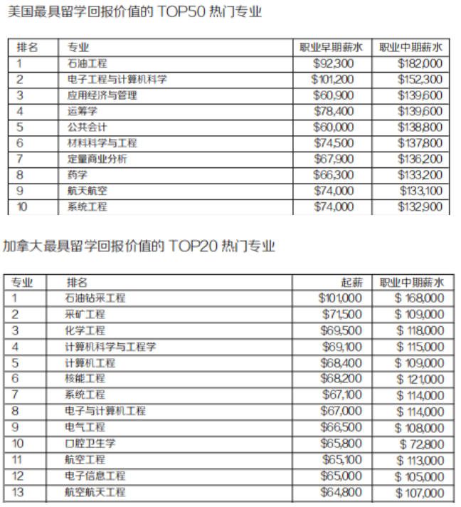 根据各学科相关职业的中高级职位薪资对比情况来看,我们不难发现航空航天专业一直处在美国、英国、加拿大等发达国家的最具留学回报价值的留学专业TOP榜榜单中。