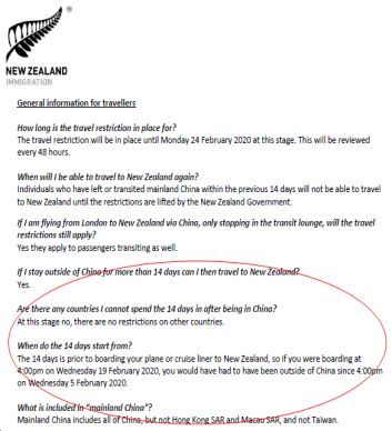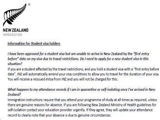 同时也在其中针对大家都很关心的:如果在中国大陆以外的第三国隔离14天后是否可以入境新西兰,14天如何计算,禁入令包含的中国大陆地区指哪些地区,学生签证是否需要延期,延期是否需要再付费,以及因此禁入令所影响的出勤率怎么办?等问题都有相关解答。