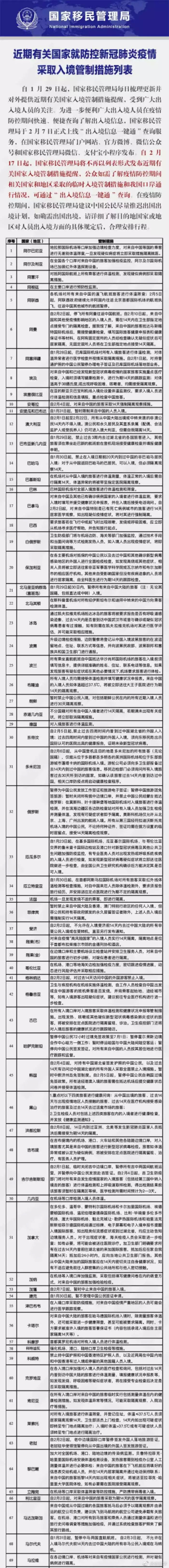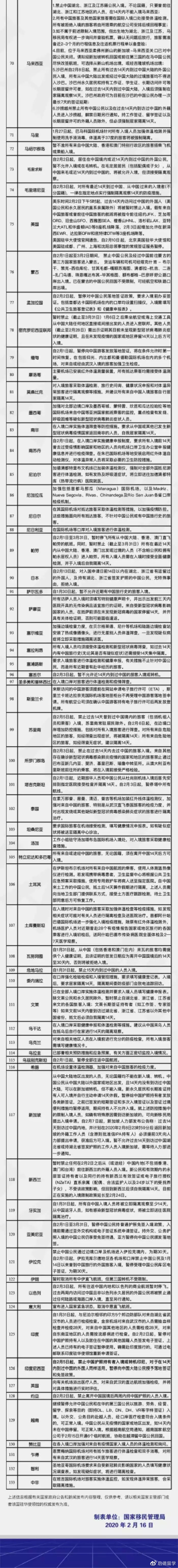 下图为2月16日,国家移民管理局发布的最新的近期有关国家入境管制措施提醒: