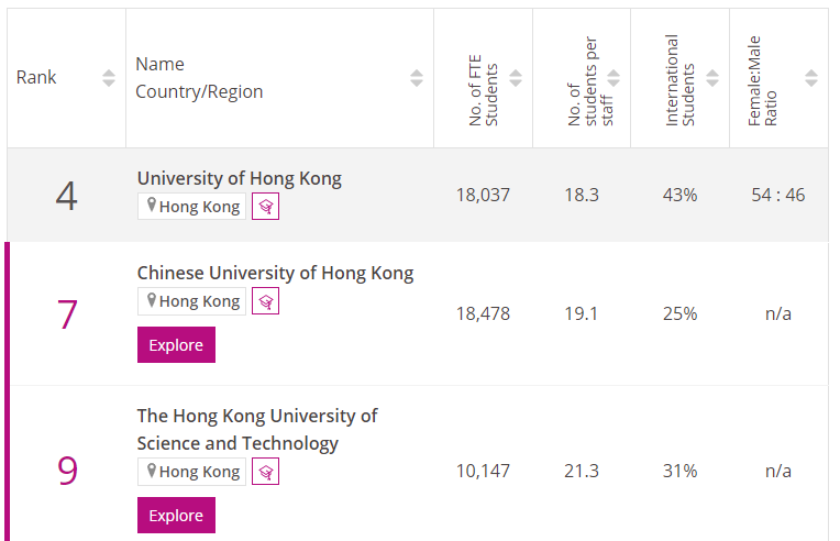 在前不久发布的2022THE亚洲大学排名中,香港大学(第4名)、香港中文大学(第7名)和香港科技大学(第9名)三所院校进入top10榜单,排名这么亮眼,含金量不言而喻。