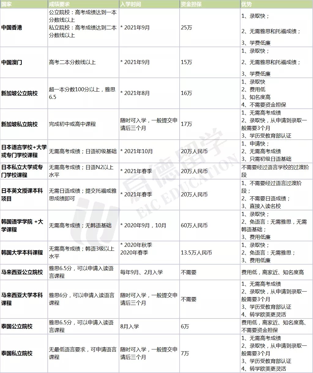 亚洲的院校一般都认可中国高考成绩,且录取速度快。