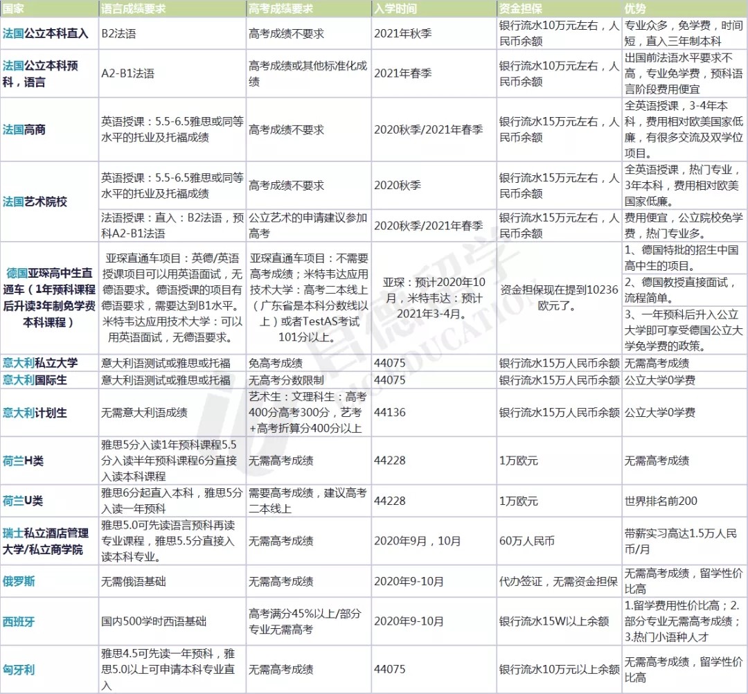 欧洲各国对高考成绩要求都不同,大多可以直接申请入学,而且留学费用便宜。