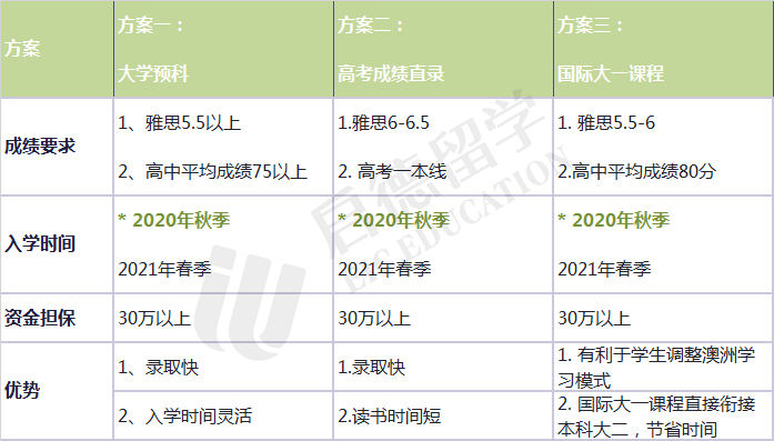 目前,已经有超过半数的澳洲大学认可中国的高考成绩,学生可以凭借高考成绩直接申请这些院校。其中著名的“澳洲八大”除墨尔本大学外,其余7所都认可高考成绩,入学分数根据专业有所不同,一般要求550-600分左右,其他学校的要求则低一些。