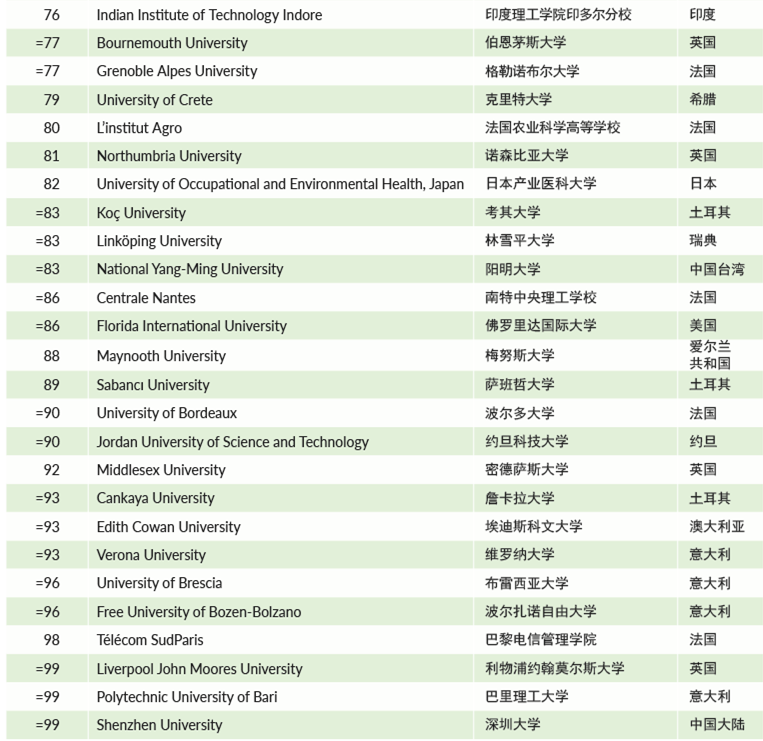 - 英爱地区共6所大学上榜,最高排名为位列第44名的布莱顿及苏塞克斯医学院;