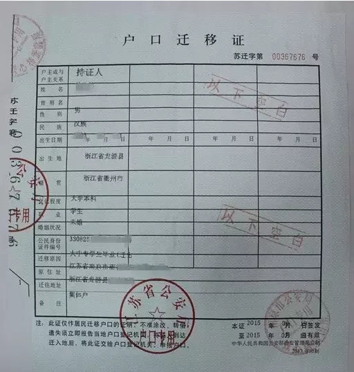需要注意的是,学生得到户口迁移证后,如果超过户口迁移证的期限(一般是1个月)未办理,需要到学校所在地派出所重新开具户口迁移证,否则就成了黑户。