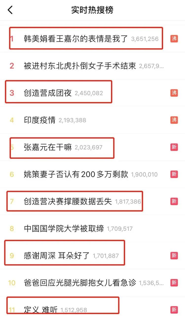 《创造营2021》在前阵子落下帷幕决赛那一晚热搜榜上,前11个话题足有6个,都跟创造营的决赛相关。