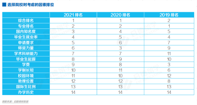首要关注排名,就业相关因素关注度上升