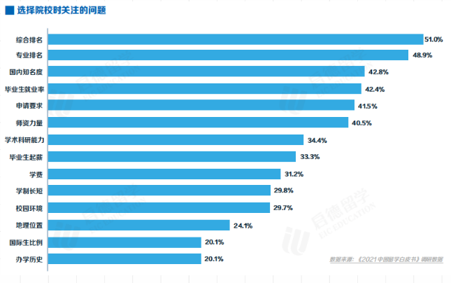 看完了留学目的地的选择后,我们来看看大家在选择院校的时候会关注些什么