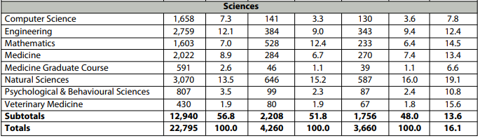 理工科中自然科学相对录取率最高。从录取率来看兽医和临床医学方向录取率相对较高,但是对于中国学生来讲也是非常难的2个医学分支,因为英国临床对于国际生的人数限制非常高,所以针对中国申请者来讲也是最难的分支。其他热门理科专业例如计算机和心理学和行为科学是录取率相对较低的分支,代表难度较大。