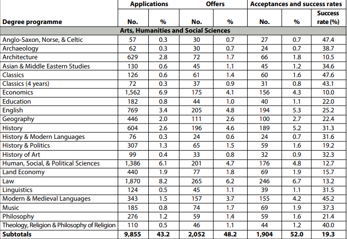 数据解读:人文社科类中语言类相关的还是比较容易申请的,但是中国学生很少有申请者涉及这些领域,因为A-Level选课有限以及对于古典语言的学习难度较大。但是大家如果对人类学、社会学方向感兴趣的同学,可以考虑宗教与哲学这个专业分支。